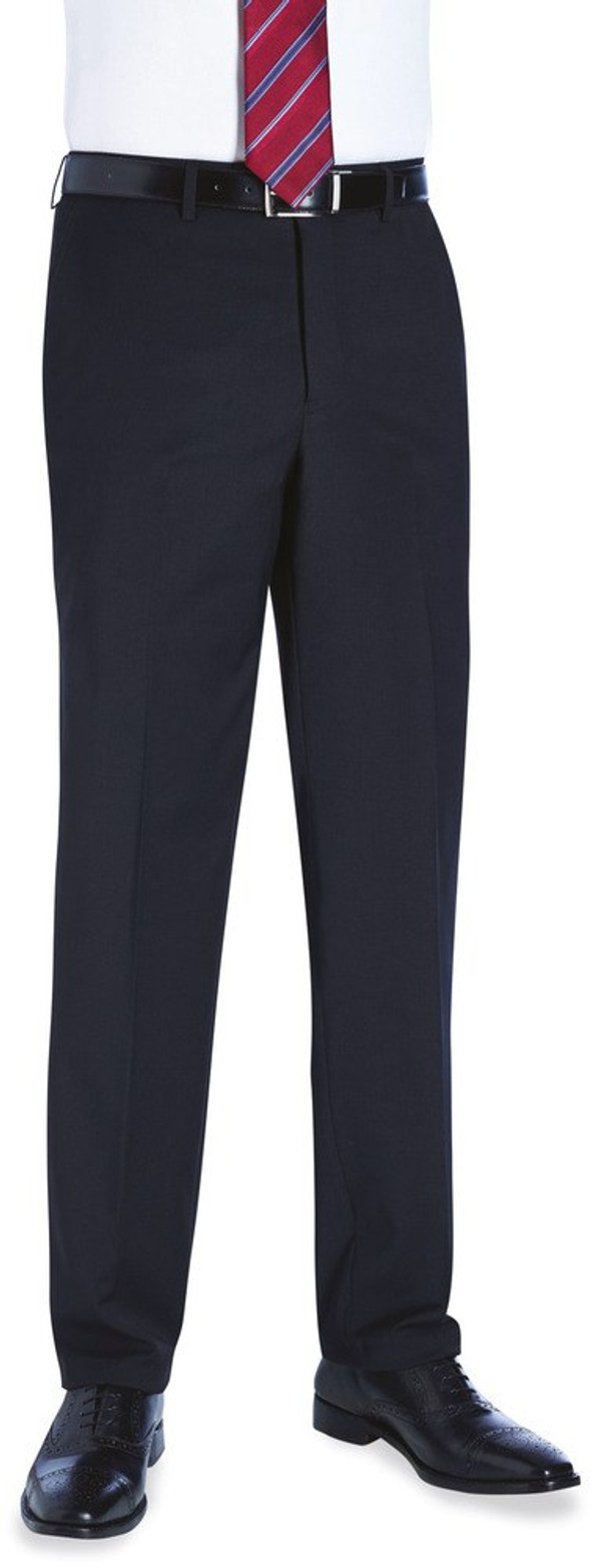 Pantalon sans pinces, coupe ajustée, 2 poches avant, 1 poche arrière (livré en "bas non-terminé" - longueur : 91.5cm).