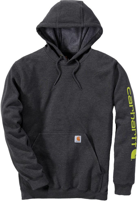Vous remarquerez la capuche en 2 parties avec son cordon de serrage assorti, la poche chauffe mains kangourou avec l'étiquette Carhatt cousue, les poignets et le tour de taille en côte stretch avec élasthanne et enfin le logo imprimé sur la manche gauche.