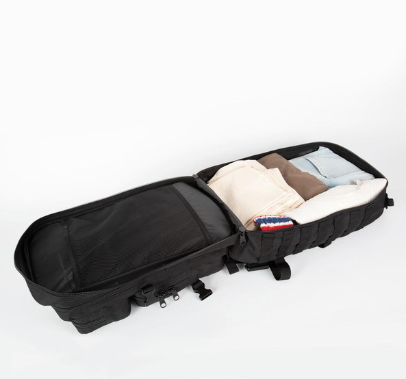 Inspiré des sacs tactiques militaires, il est idéal pour les activités de plein air, d'ailleurs, il possède un compartiment pour poche d'eau avec ports pour les tubes d'hydratation.