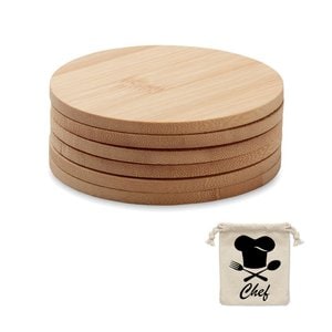 Lot de 6 dessous de verre ronds en bambou avec pochon en coton, offrant une solution durable et élégante pour protéger vos surfaces. Ces dessous de verre écologiques sont fabriqués en bambou naturel, reconnu pour sa solidité et sa résistance à l'humidité. L'ensemble est présenté dans un sac en coton de 15x12 cm avec cordon de serrage, idéal pour le rangement ou comme coffret cadeau. Pour les professionnels, la surface en bambou est parfaite pour la gravure laser, tandis que le pochon en coton permet la sérigraphie ou le DTF. Utilisé comme accessoire de maison minimaliste ou comme cadeau d'entreprise personnalisé, ce lot allie utilité et respect de l'environnement. Disponible en gros pour l'hôtellerie et l'événementiel.