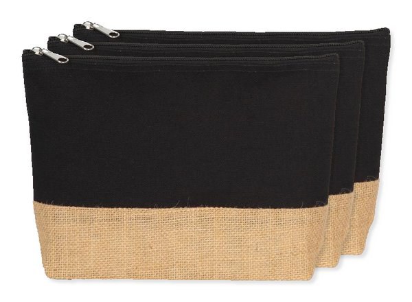 Pack de 3 Kimood KI0276 - Noir/ Naturel - Pochette en toiles de coton et jute
