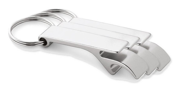 Porte-clés en aluminium avec ouvre-capsules. Disponible dans une large gamme de couleurs