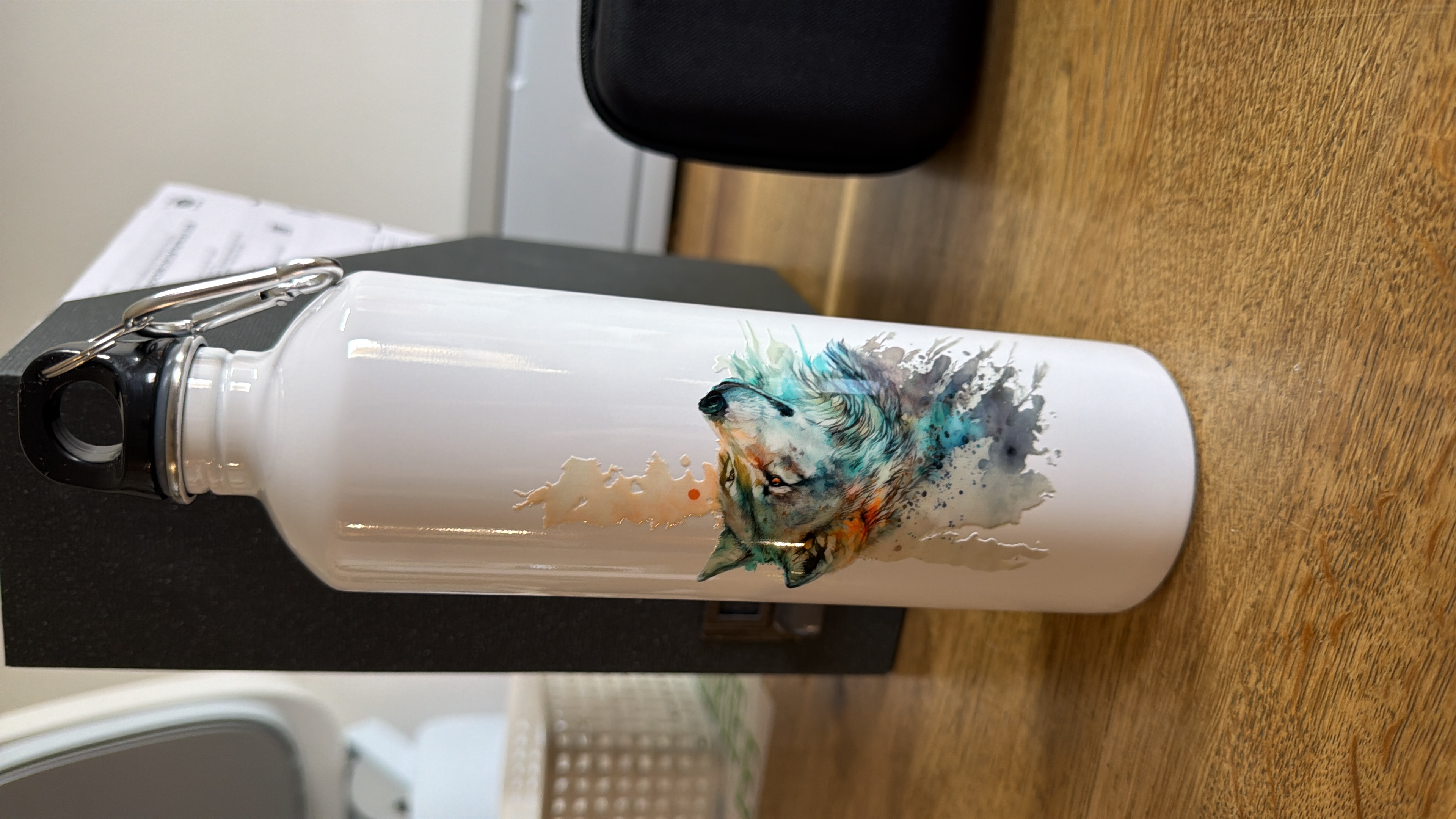Belle gourde pour personnalisation. Dans mon cas j’ai utilisé du DTF UV. Rendu parfait. Belle gourde légère