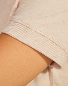 Finitions des manches et large encolure ronde en côte 2x1.