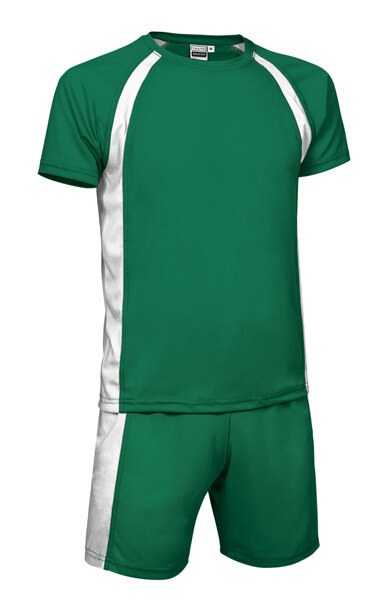 Ensemble de sport composé d’un t-shirt à manches courtes et d’un short. Fabriqué en tissu technique respirant Bird-Eye qui facilite l’évacuation de la transpiration et au séchage rapide. Design original aux couleurs vives, bicolore. Double surpiqûre au col, manches et bas du t-shirt et du short qui augmentent sa résistance. Taille avec élastique et cordon de serrage pour un meilleur ajustement et un plus grand confort. Convient pour diverses méthodes de marquage : sublimation sur blanc, sérigraphie, broderie, transfert, vinyle. Idéal pour habiller les équipes de sport, ne se vend pas séparément.