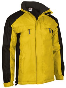 Parka imperméable avec capuche rétractable, bicolore. Fabriquée en tissu Rip-Stop imperméable, matelassée, doublure intérieure lisse et tissu polaire anti-pilling sur le col et poches pour plus de rétention thermique et de confort. Coutures thermo-scellées pour éviter les infiltrations d’eau et garder le corps au sec par temps de pluie. Poignets réglables par velcro et ceinture droite avec cordon élastique régulateur et frein pour un meilleur ajustement et un plus grand confort. Deux poches obliques à la taille, deux sur la poitrine et une poche intérieure, toutes avec zip pour tout avoir à portée de main. Zip intérieur dans le dos pour faciliter le marquage : sérigraphie, broderie, écussons, transfert, vinyle. Idéal comme vêtement de travail, textile publicitaire et activités en extérieur.