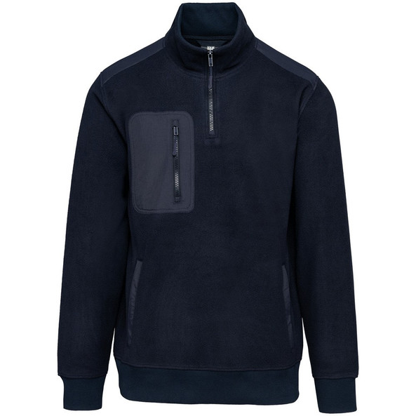 1 poche poitrine arrondie zippée avec tire-zip côté droit au porté en taslan avec surpiqûres ton sur ton.